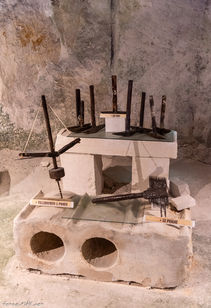 Les parois de ces immenses "grottes" portent les traces des seuls outils utilisés par les carriers, les aiguilles et les lances. C'est dans les années soixante avec l'arrivée du béton que la carrière à vu sa production baissée puis arrêtée.